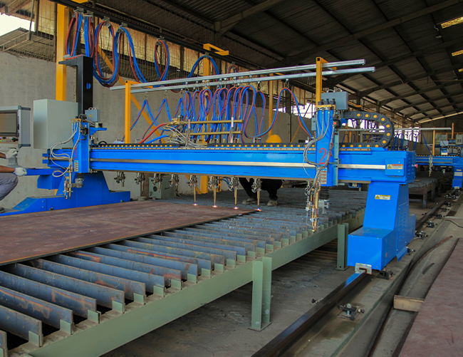 Workshop kami menyediakan layanan berkualitas tinggi dalam manufaktur dan fabrikasi baja. Kami menggunakan mesin komputerisasi terkini seperti pengeboran, pemotongan, pelubangan, pembengkokan, dan pemesinan balok las. Kapasitas bengkel kami adalah 750 MT per bulan. Kami adalah fabrikasi baja terbaik di Indonesia.